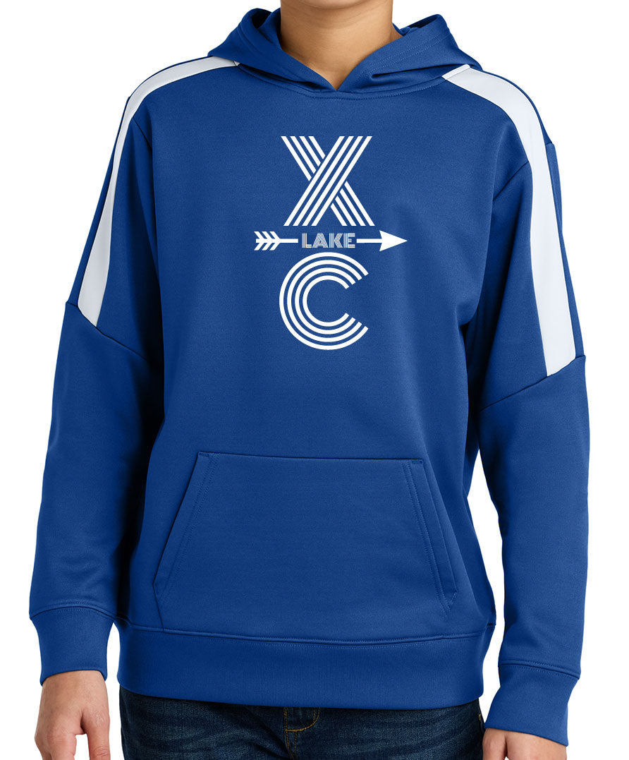 Youth Royal & White Performance Material Hoodie with White Lake XC Logo.